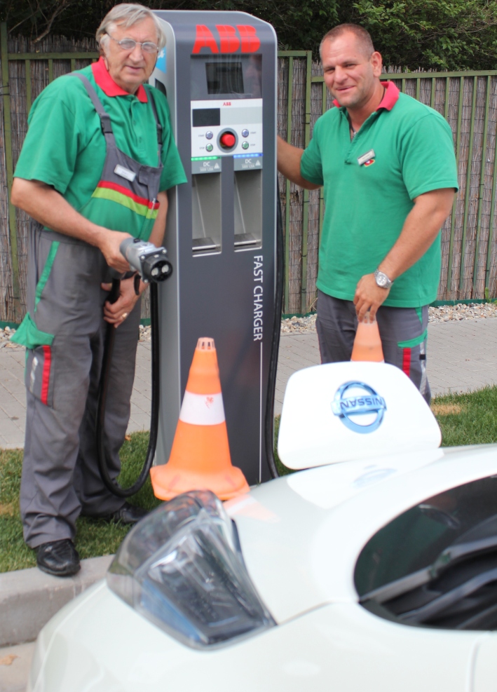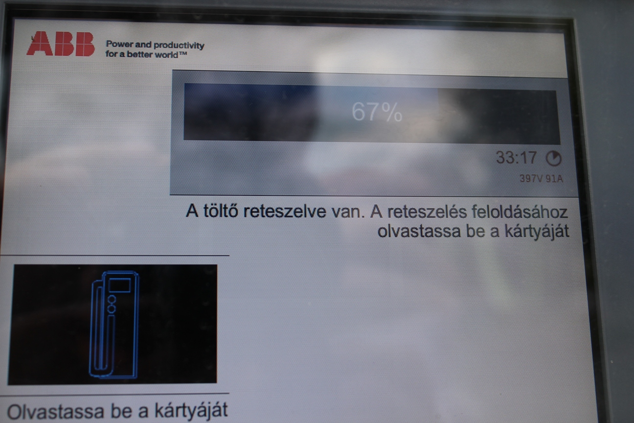 Az ABB gyorstöltőt azonnal megtaláltam, és leparkoltam elé. A töltés megkezdéséhez igénybe kellett vennem a kút dolgozói segítségét, mert csak a náluk található kártyával lehet megkezdeni. [%IMAGE=18265%]A két alkalmazott nagyon segítőkész volt, és látszott rajtuk, hogy örülnek, hogy a ritkábban előforduló elektromos autósoknak segíthetnek szakértelmükkel. Különösen örvendetes ez azt figyelembe véve, hogy jelenleg az elektromos autófeltöltés ingyenes.