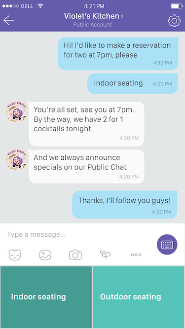Nyilvános Fiók (Public Account) néven indított új szolgáltatást a Viber, amelyen keresztül a cégek és márkák, illetve közéleti szereplők kommunikálhatnak vásárlóikkal, ügyfeleikkel és rajongóikkal. Az új globális kommunikációs platformot üzleti megoldásként a legkisebb és a legnagyobb cégek és márkáknak is igénybe vehetik a célcsoportjaikkal folytatott kommunikációban.