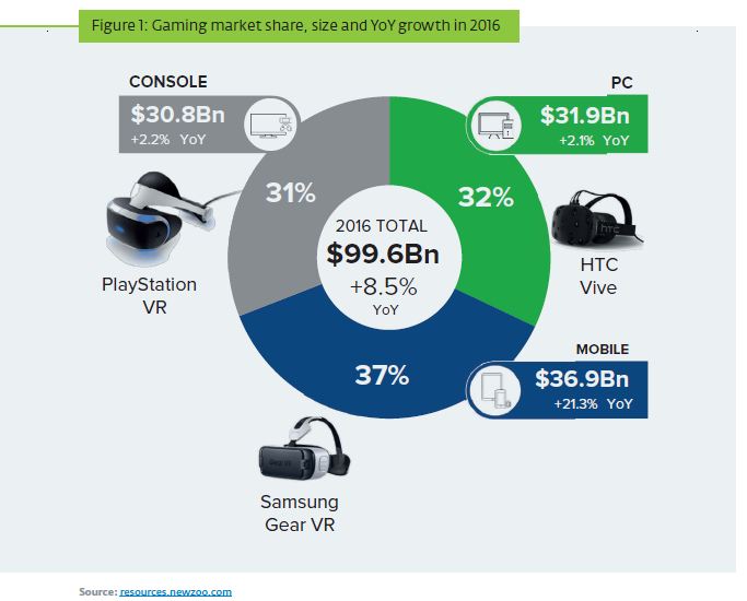 Az előrejelzésben külön fejezet foglalkozik a videojátékokhoz kapcsolódó veszélyekkel. A videojátékok piaca 2016-ban közel 100 milliárd dolláros bevételt könyvelhetett el, és a szegmens 8,5 százalékos növekedést produkál évente.