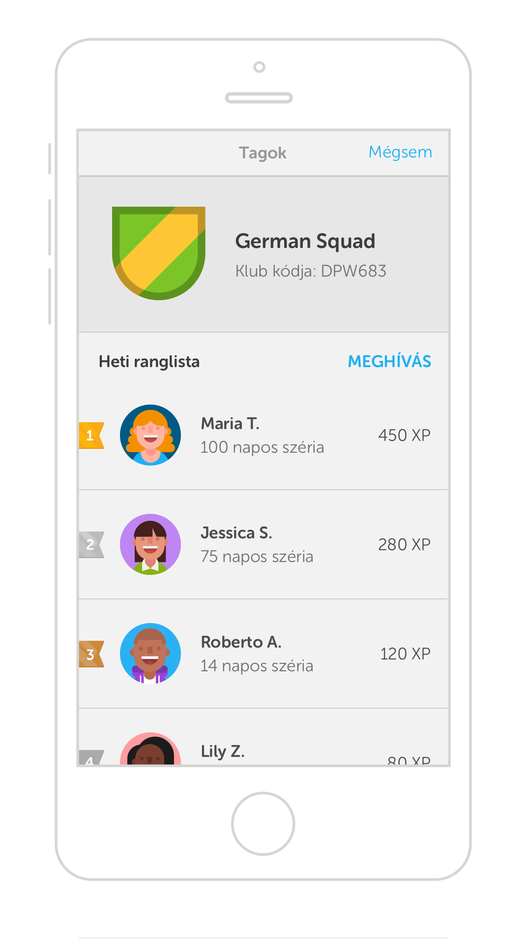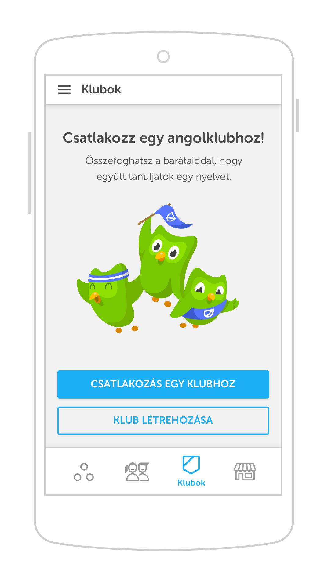 Nincs jobb egy kis baráti noszogatásnál. Kutatások igazolják, hogy a versenyre vagy közös munkára ösztönző, csoportos oktató játékok jelentősen növelik a felhasználók tanulás iránti érdeklődését. A Duolingo “klubokban”, amelyek már elérhetők az alkalmazáson belül,  a tagok láthatják egymás eredményeit, előrehaladását, kinek van a legtöbb nyelvtanulásért szerzett pontja, így a tagok egymást motiválják. “Észrevetted, hogy a barátnőd már 5 percet angolozott az Angol Klubban, miközben te még csak most bújtál ki az ágyból?” “A haverod kihagyott egy napi gyakorlást és máris elveszítette megdönthetetlennek tűnő első helyét a klubban?” - ilyen és ehhez hasonló megfigyelések ösztönzik a felhasználókat arra, hogy rendszeresen gyakorolják a nyelvet.