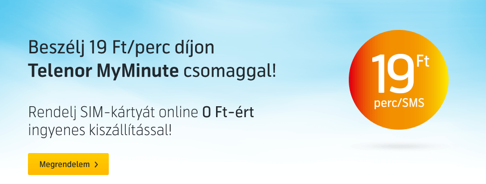 A Telenor MyMinute kártyás csomag havidíj nélkül nyújt kedvező, minden belföldi hálózatba egységesen 19 forintos percdíjat és SMS-küldést. A tarifához igény szerint kedvező árú mobilinternet-csomag is rendelhető.